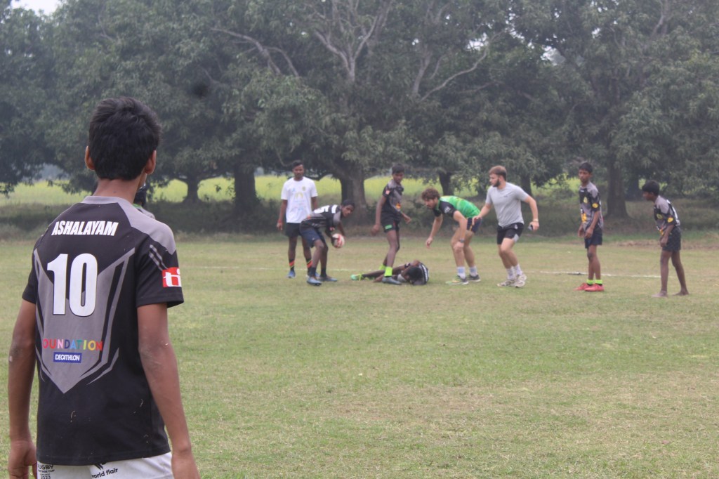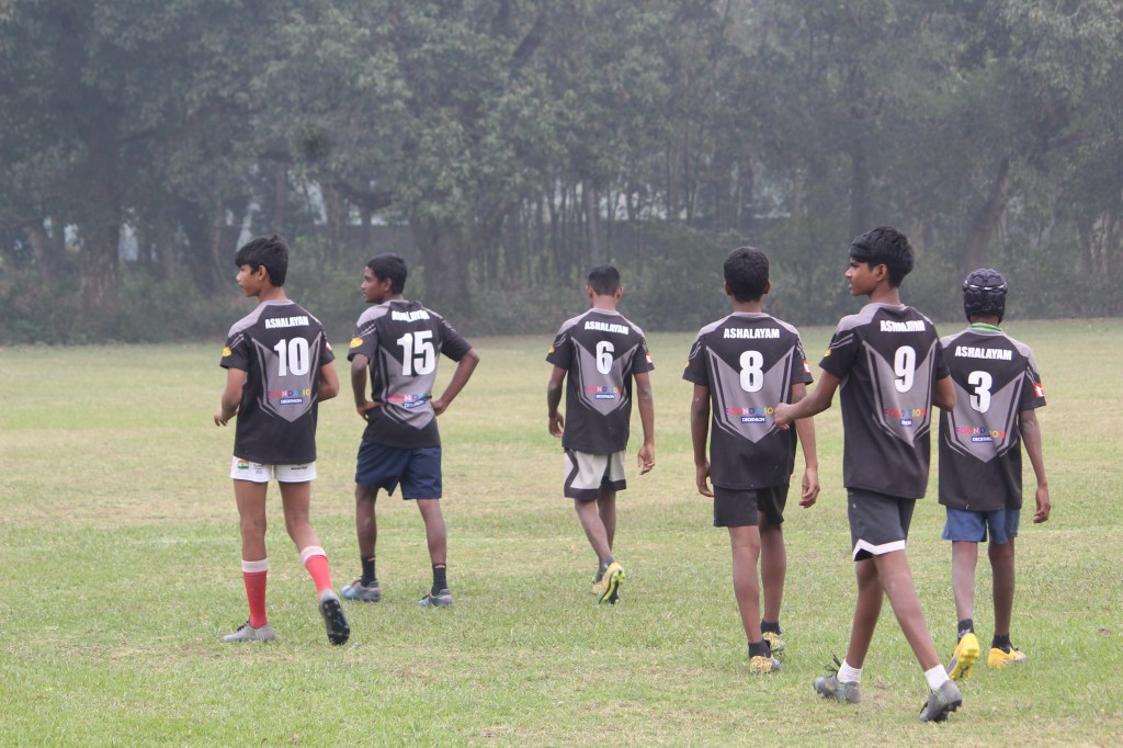 C’est avec envie que les jeunes d’Ashalayam sont allés porter les couleurs de l’ONG, mais aussi celles de tout le district d’Howrah. Au-delà de la potentielle place pour jouer avec la sélection du West Bengal, c’est la volonté de mettre en pratique tous les entraînements qui a motivé nos rugbymen à se rendre jusqu’à Kasinathpur, tout à l’est de Kolkata.