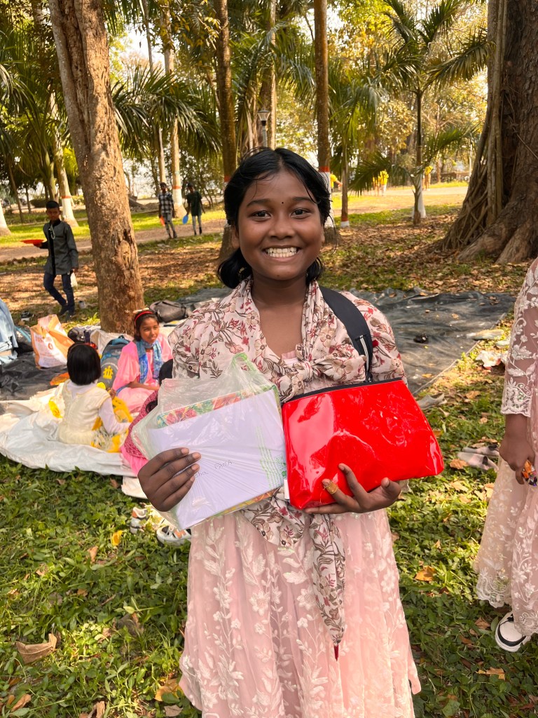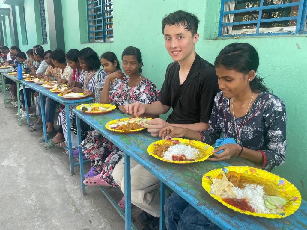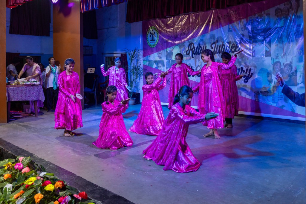 Après ce début de journée déjà chargé en émotions et en gouttes sur le front, les autres foyers d’Ashalayam ont rejoint les festivités. De Bakrahat jusqu’à Kalyani, nos enfants étaient ravis de célébrer les rencontres et les retrouvailles avec les amis d’Ashalayam. Danses, chants, théâtre et remerciements se sont succédé dans la liesse générale. Une mention spéciale tout de même à Brother Francis, Brother Nabin et presque Brother Christophe, qui ont été chaleureusement remerciés pour leurs 25 années au service des enfants. Les performances se sont clôturées par un Teri Baaton Mein endiablé mené par notre Father Hugo préféré et suivi par tous les enfants d’Ashalayam dans un merveilleux chaos. Le repas du soir n’avait rien à envier au copieux déjeuner et, pendant qu’une partie des invités et des enfants se régalaient, les plus énergiques ont poursuivi les chorégraphies jusqu’à l’extinction des feux.