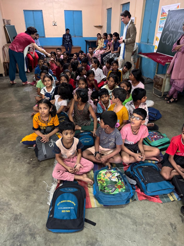Ensuite, Bablou, un ancien enfant d’Ashalayam, aujourd’hui manager de trois brasseries en France, a partagé son histoire. Il a transmis aux enfants un message d’espoir en évoquant les difficultés qu’il a surmontées et en insistant sur l’importance des études et du travail. Un moment très émouvant pour lui, car Bhattanagar est un lieu très spécial dans son parcours, ayant grandi au sein de ses foyers.
