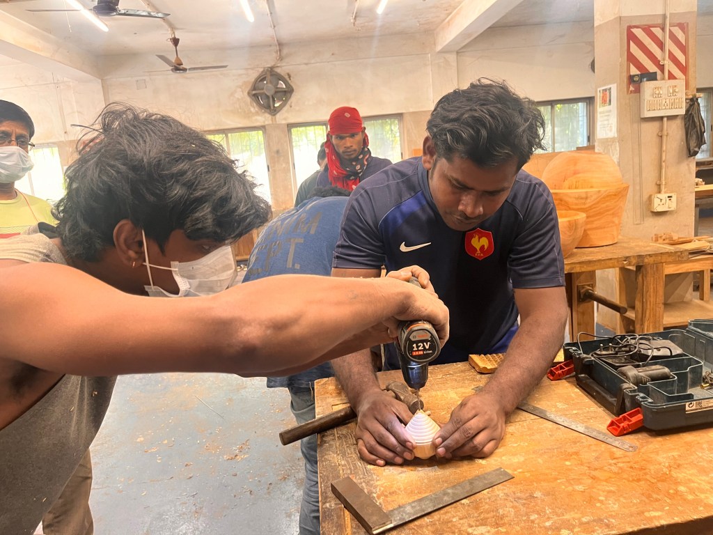 La plus ancienne formation, délivrée depuis plus de 25 ans par un ancien volontaire tombé amoureux du West Bengal, permet à nos jeunes de devenir des menuisiers accomplis. Du travail à la main jusqu’aux machines les plus récentes, nos jeunes ressortent de cette formation avec le sourire aux lèvres mais aussi avec un savoir d’orfèvre dans les doigts.