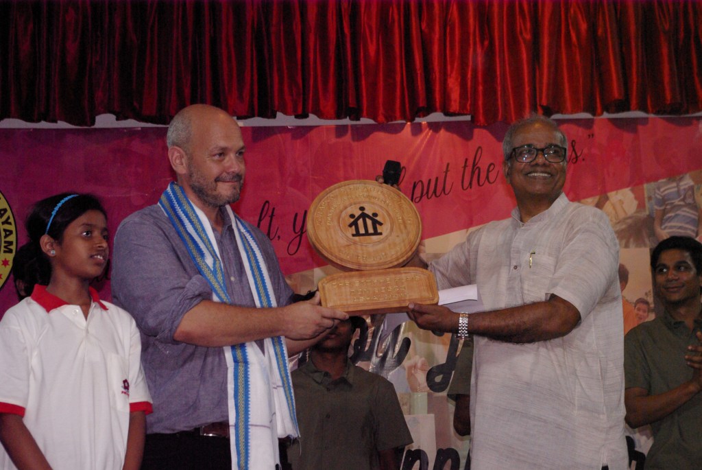 Suite à ces merveilleuses prestations, plusieurs hommages ont été rendus. Frédéric, sur scène, a rappelé aux enfants l’action menée par l’ASA France et a souhaité mettre en lumière Brother Francis, sans qui les foyers de Bhattanagar n’auraient pas le même visage.