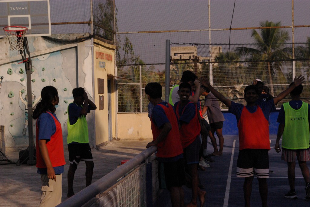 Une fois reposés, place au tournoi de Kabaddi, organisé par nos coachs Sagar et Adrien. Ce sport, extrêmement populaire en Inde, repose sur une alternance d’attaque et de défense : un joueur doit pénétrer dans le camp adverse, toucher un maximum d’opposants et revenir dans son camp sans être plaqué au sol.