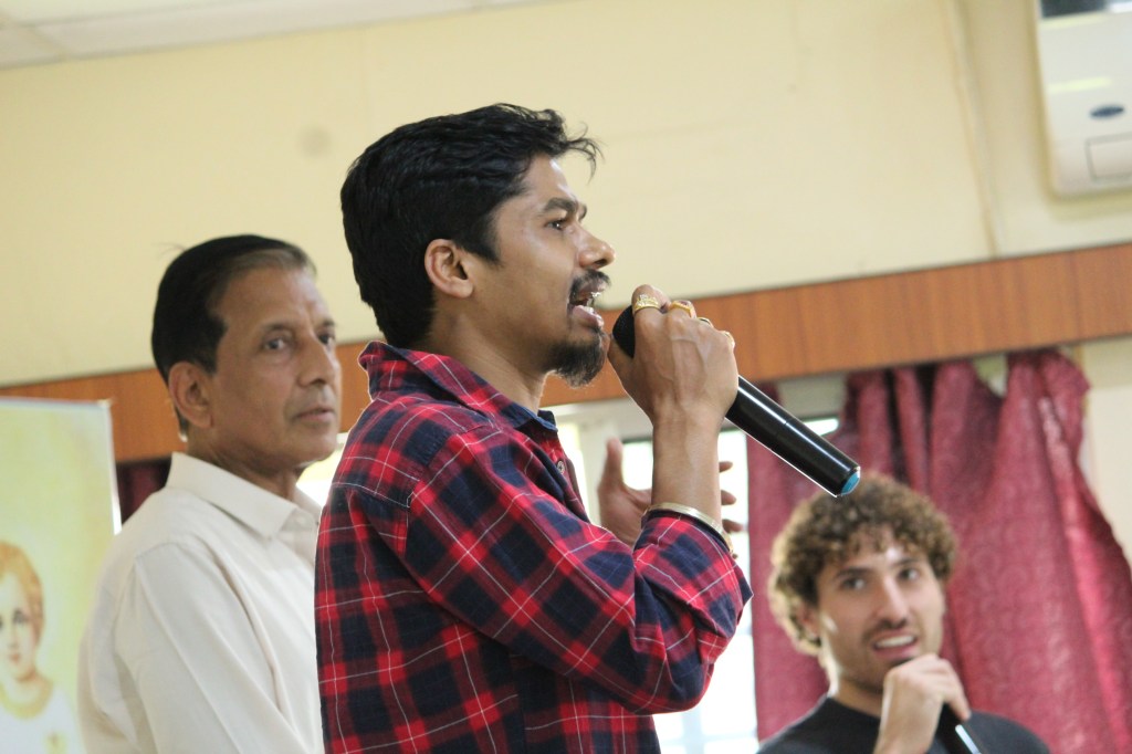 Bonjour à tous. Je suis Samer Roy, l’un des plus anciens d’Ashalayam. Mon anglais n’est pas parfait, mais j’espère que vous me comprendrez.